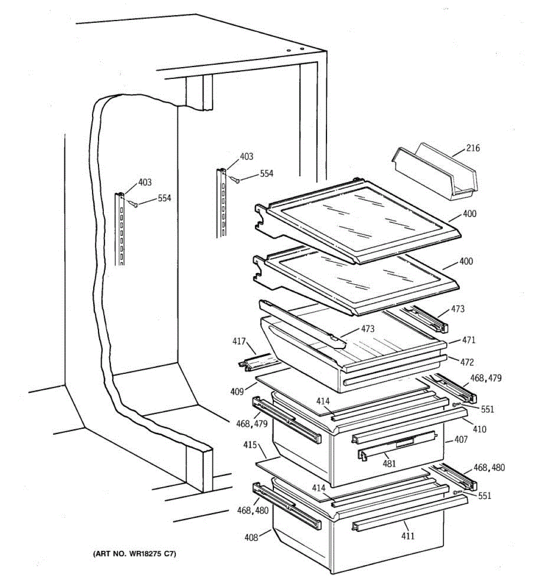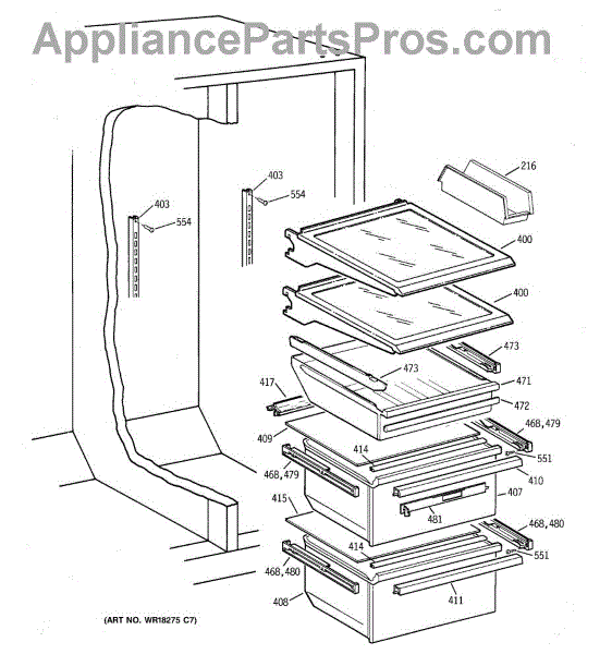 This replacement part is a snack pan slide rail, and it is intended for use in different types of appliances. This is a genuine replacement part made by General Electric. This part is able to hold up other trays and racks in the refrigerator and freezer so that extra shelf space can be utilized. These slide rails can also hold up trays that can support heavy bottles and drinks. A new snack pan slide rail might be needed if the current ones have become stripped and are unable to latch onto the shelving to support it. It is common that these parts can become brittle over time as exposure to low temperature wears down the plastic. Be sure the shelving of the appliance is clear before attempting to replace the slide rail. This is an OEM part sourced directly from the manufacturer. It is sold individually. This replacement part is compatible with different types of appliances made by General Electric.