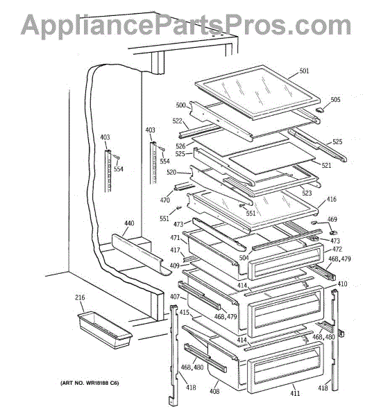 Parts for Ge TFK30PRBCAA: 06 - Fresh Food Shelves Parts