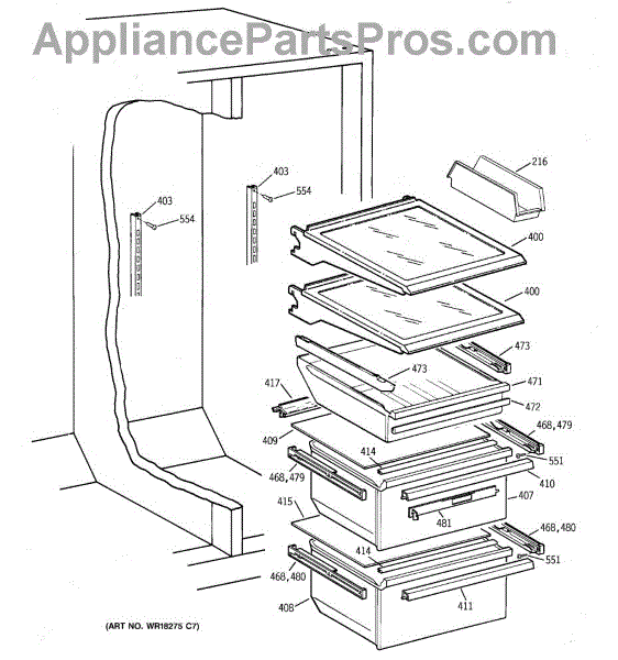 This replacement part is a snack pan slide rail, and it is intended for use in different types of appliances. This is a genuine replacement part made by General Electric. This part is able to hold up other trays and racks in the refrigerator and freezer so that extra shelf space can be utilized. These slide rails can also hold up trays that can support heavy bottles and drinks. A new snack pan slide rail might be needed if the current ones have become stripped and are unable to latch onto the shelving to support it. It is common that these parts can become brittle over time as exposure to low temperature wears down the plastic. Be sure the shelving of the appliance is clear before attempting to replace the slide rail. This is an OEM part sourced directly from the manufacturer. It is sold individually. This replacement part is compatible with different types of appliances made by General Electric.