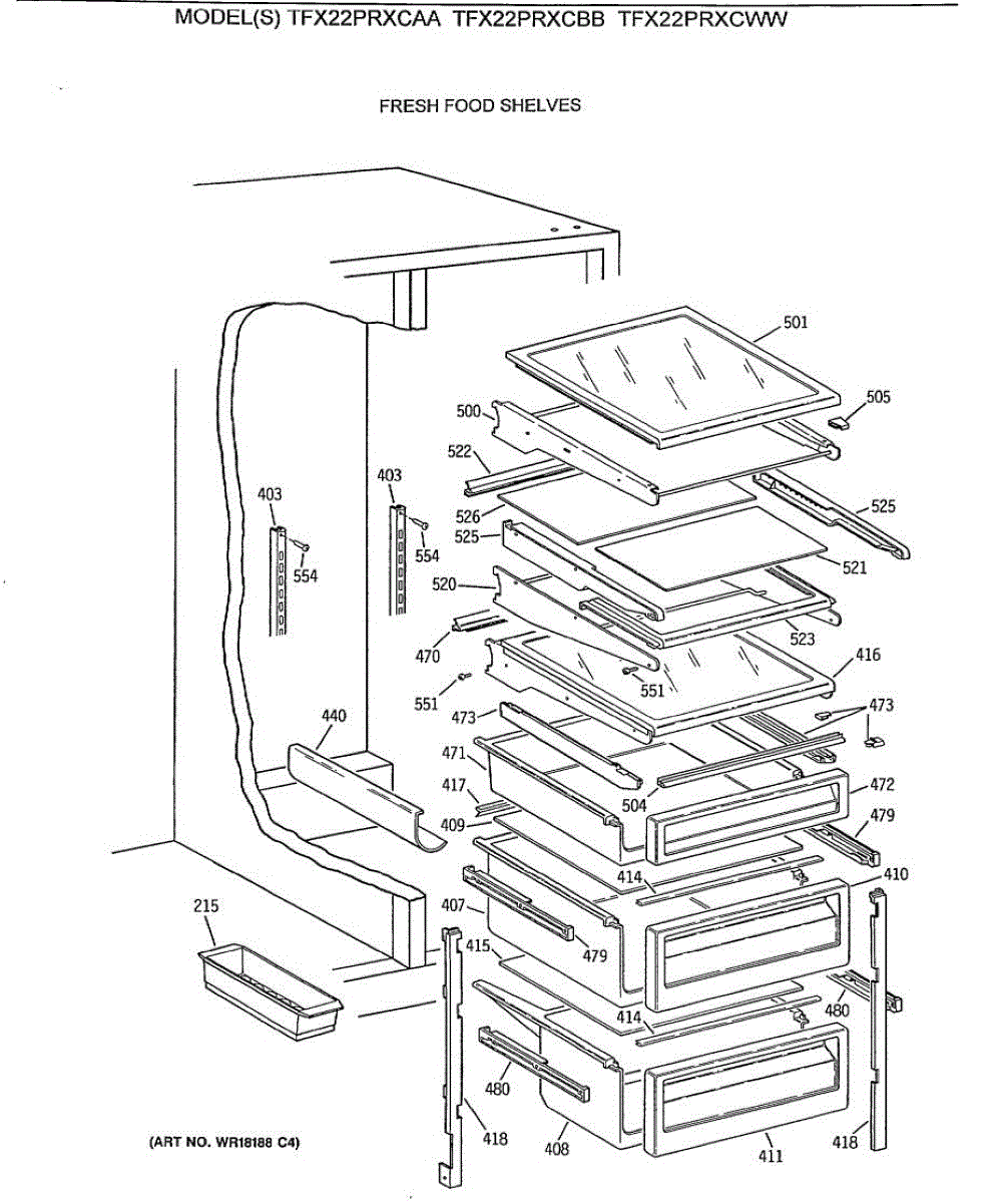 Parts for Ge TFX22PRXCBB: 05 - Fresh Food Shelves Parts