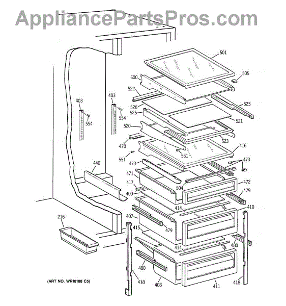 Parts for Ge TFX22PRXDAA: 05 - Fresh Food Shelves Parts