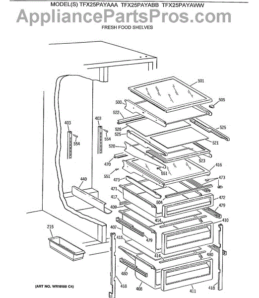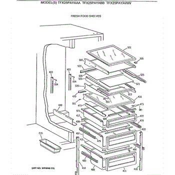 Parts for Ge TFX25PAYABB: 04 - Fresh Food Shelves Parts
