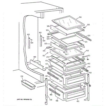 Tuck-away glass shelf for refrigerator crisper compartment. Replaces cracked, broken, or missing glass shelves. Installs above crisper drawers.