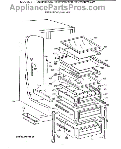 Parts for Ge TFX25PRYABB: 05 - Fresh Food Shelves Parts