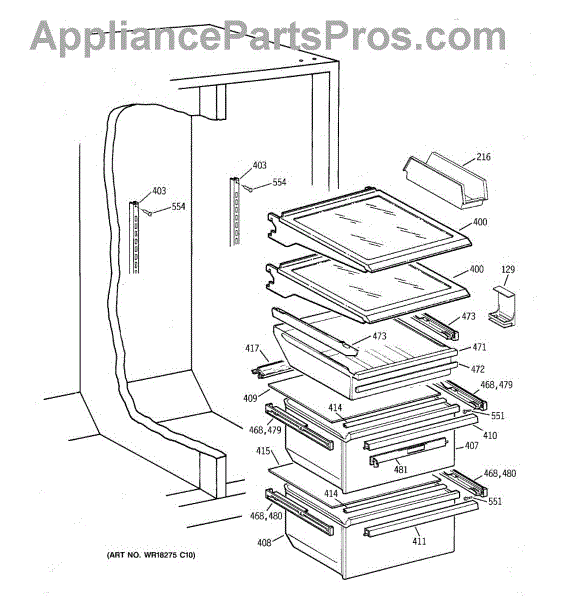 This replacement part is a snack pan slide rail, and it is intended for use in different types of appliances. This is a genuine replacement part made by General Electric. This part is able to hold up other trays and racks in the refrigerator and freezer so that extra shelf space can be utilized. These slide rails can also hold up trays that can support heavy bottles and drinks. A new snack pan slide rail might be needed if the current ones have become stripped and are unable to latch onto the shelving to support it. It is common that these parts can become brittle over time as exposure to low temperature wears down the plastic. Be sure the shelving of the appliance is clear before attempting to replace the slide rail. This is an OEM part sourced directly from the manufacturer. It is sold individually. This replacement part is compatible with different types of appliances made by General Electric.