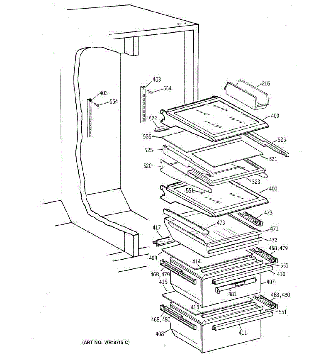 Parts for Ge TFX26ZPDAAA: 05 - Fresh Food Shelves Parts