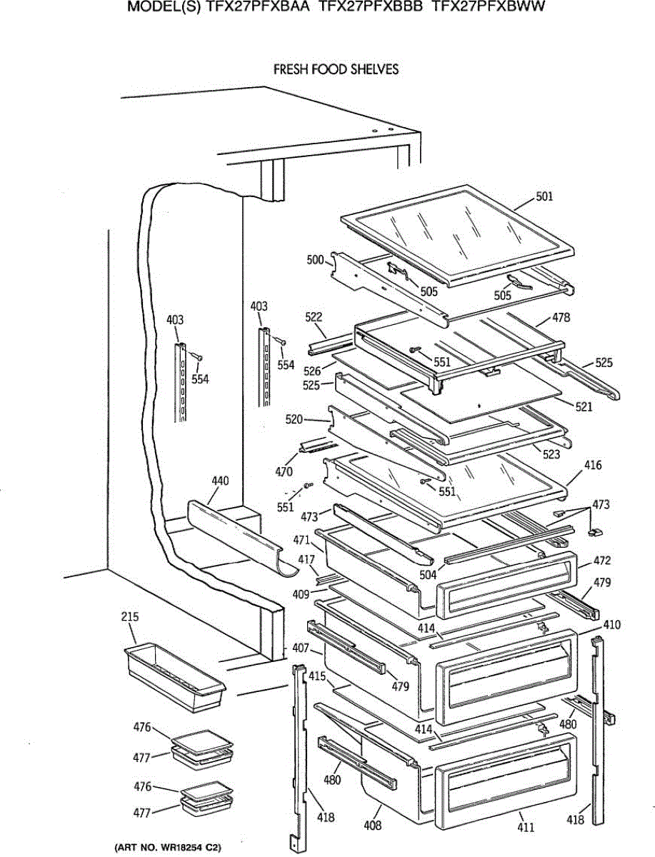 Parts for Ge TFX27PFXBBB: 05 - Fresh Food Shelves Parts