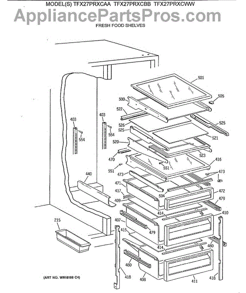 Parts for Ge TFX27PRXCAA: 05 - Fresh Food Shelves Parts