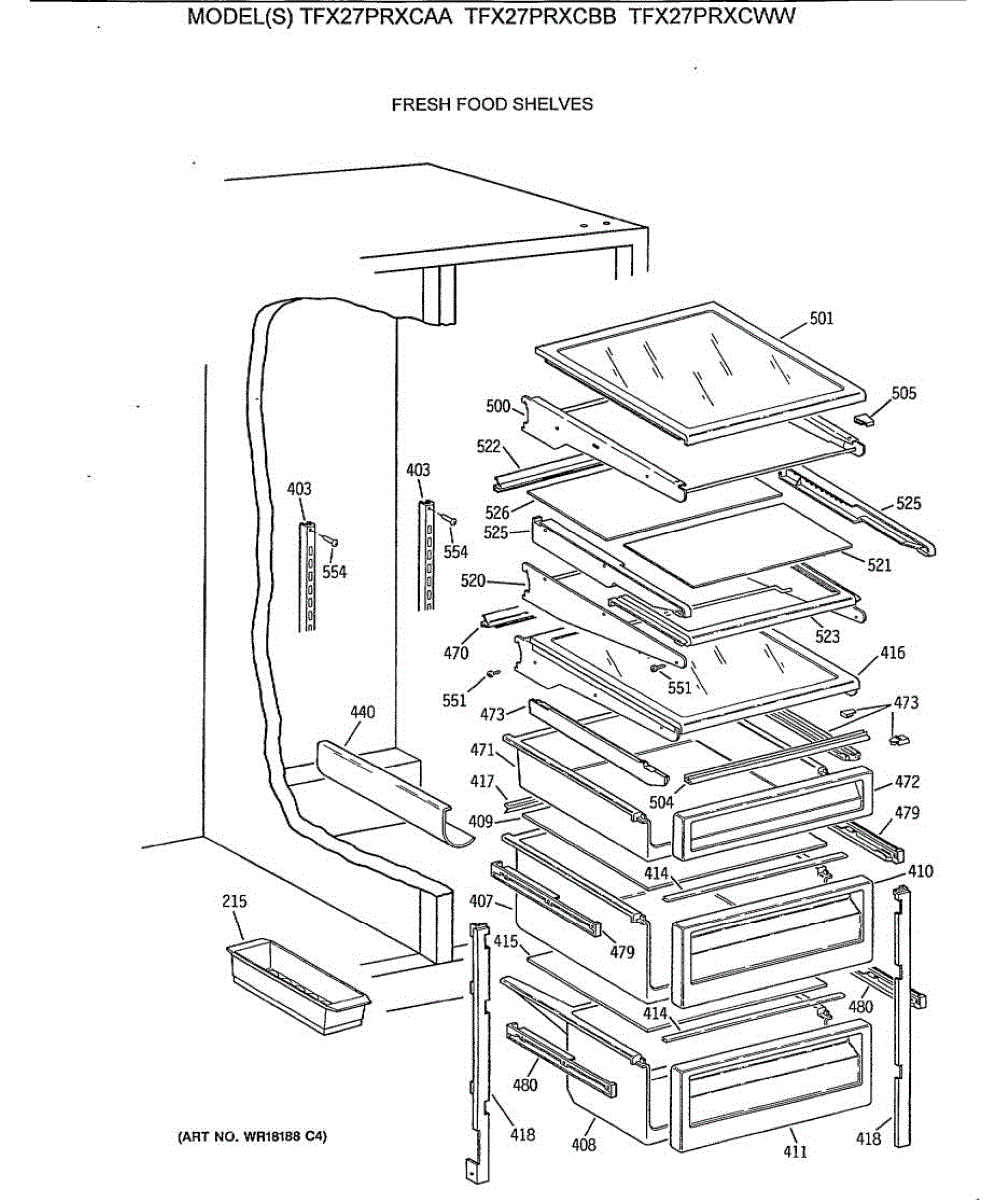 Parts for Ge TFX27PRXCBB: 05 - Fresh Food Shelves Parts