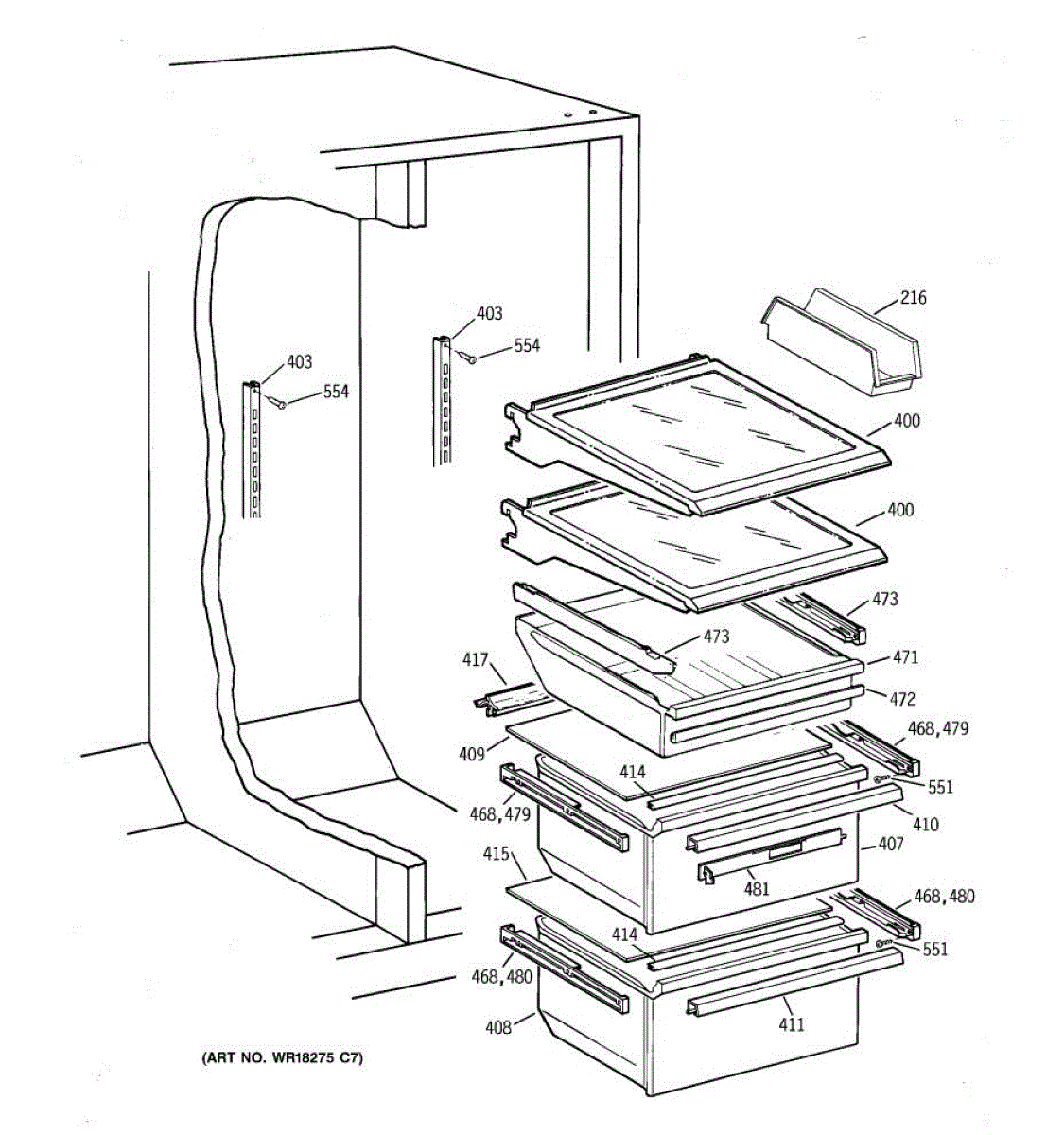 Parts for Ge TFX27ZPBEBB: 05 - Fresh Food Shelves Parts
