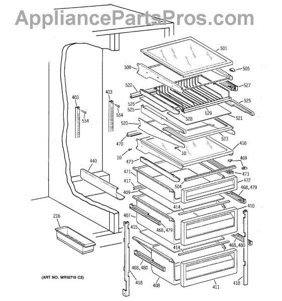 The Slide Assembly RH is an OEM replacement part for GE side-by-side refrigerators. As a replaceable sub-assembly, it restores smooth extension of plastic vegetable/multi-purpose slides on the right interior. The slide measures approximately 16 inches.