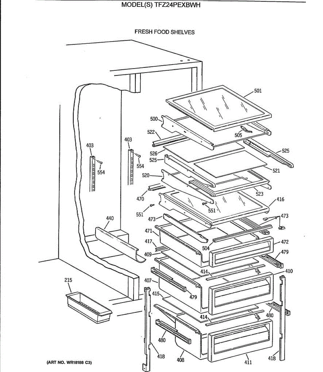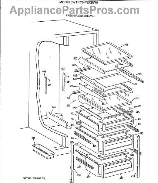 Parts for Ge TFZ24PEXBWH: 05 - Fresh Food Shelves Parts