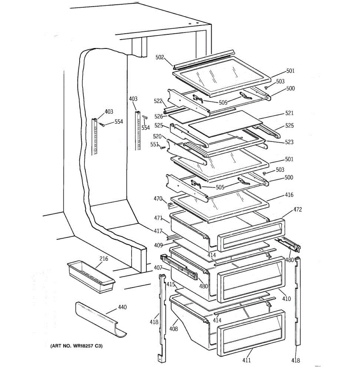 Replace your cracked or broken spillproof cantilever shelf. This refrigerator shelf installs inside the fresh food compartment to organize food items.
