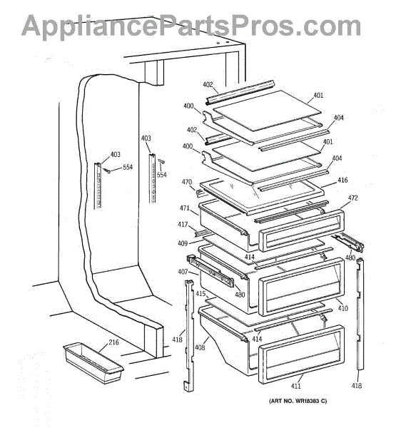 Replace a cracked or broken shelf cant in your refrigerator. This structural support piece secures and angles shelving inside the fresh food compartment.
