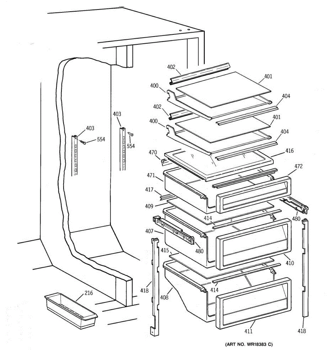 Replace a cracked or broken shelf cant in your refrigerator. This structural support piece secures and angles shelving inside the fresh food compartment.