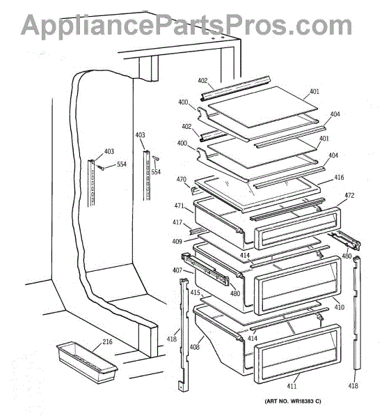 Replace a cracked or broken shelf cant in your refrigerator. This structural support piece secures and angles shelving inside the fresh food compartment.