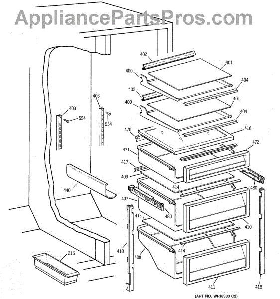 Parts for Ge TPG21KRDAWS: 05 - Fresh Food Shelves Parts