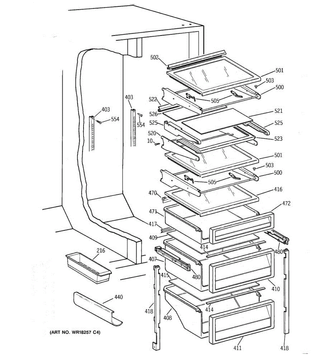 This shelf support secures a refrigerator shelf in place to keep food and containers stable. It restores proper shelf alignment and helps prevent sagging or falling items. What it does: