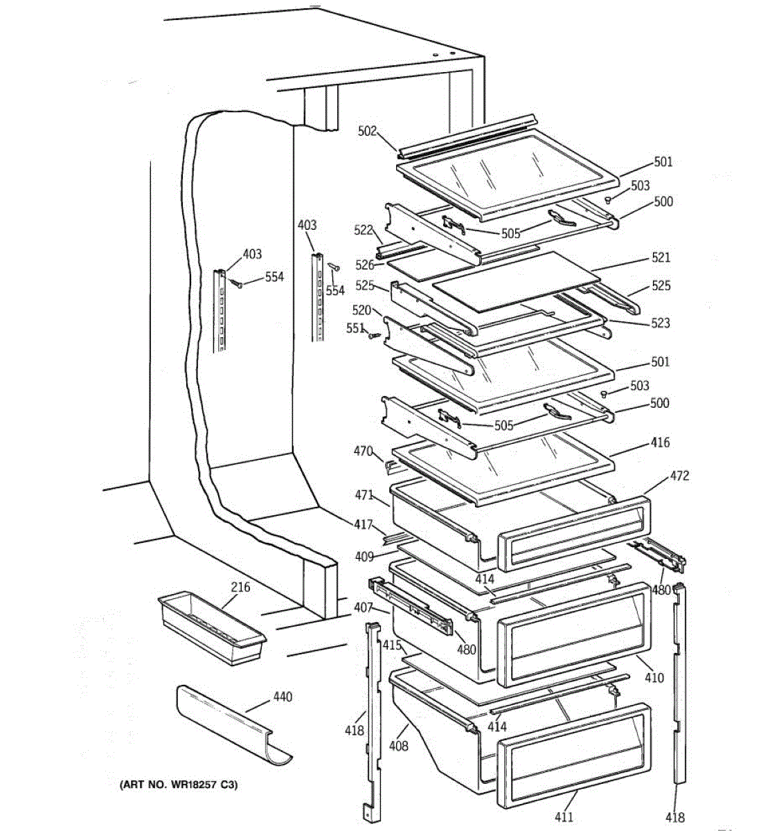 Parts for Ge TPG21PRXFBB: 05 - Fresh Food Shelves Parts