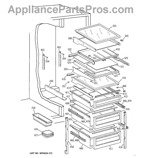 Parts for Ge TPG24BFBBWW: 06 - Fresh Food Shelves Parts