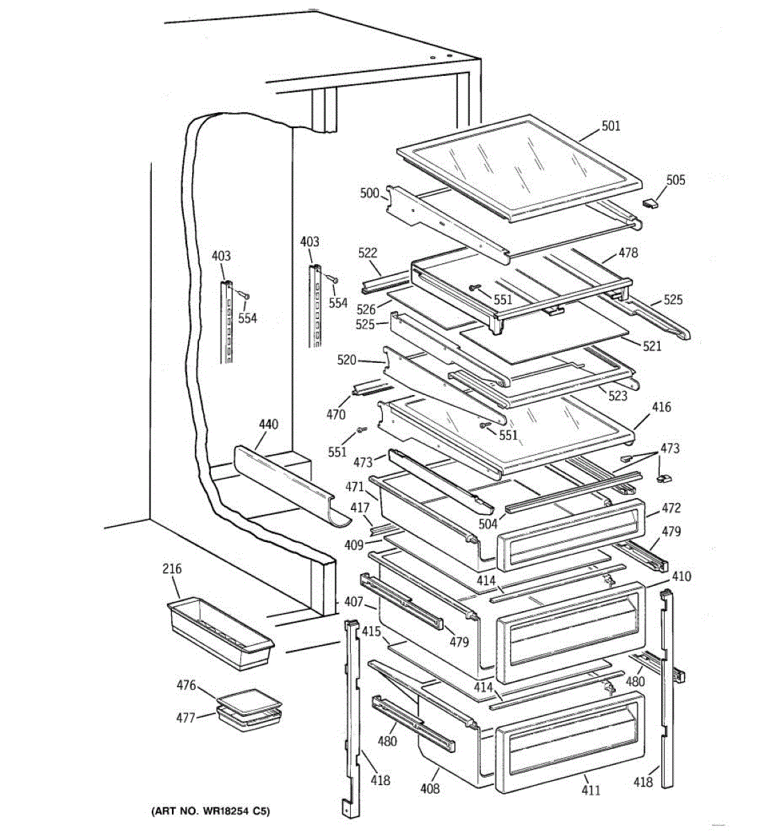 Causes relate to typical wear and tear over time under regular use. Improper loading of shelves can also potentially damage slide machinery.