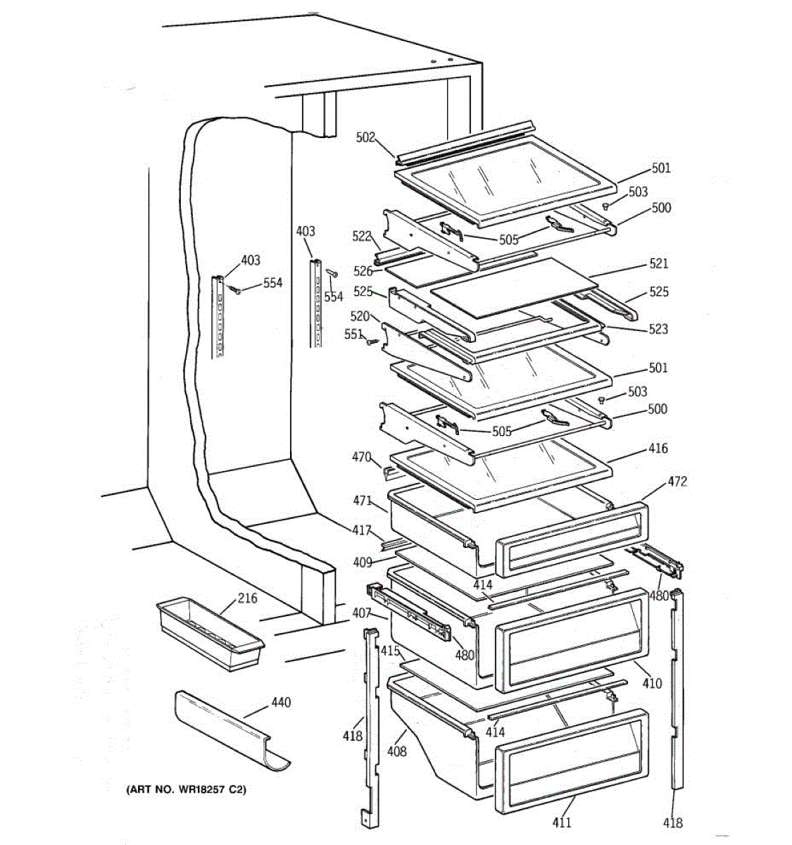 Parts for Ge TPX21BRBABB: 05 - Fresh Food Shelves Parts