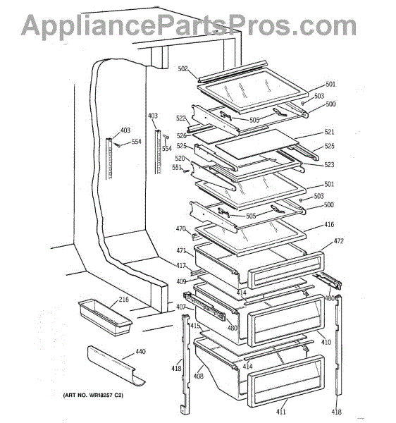 Parts for Ge TPX21PRBAAA: 05 - Fresh Food Shelves Parts
