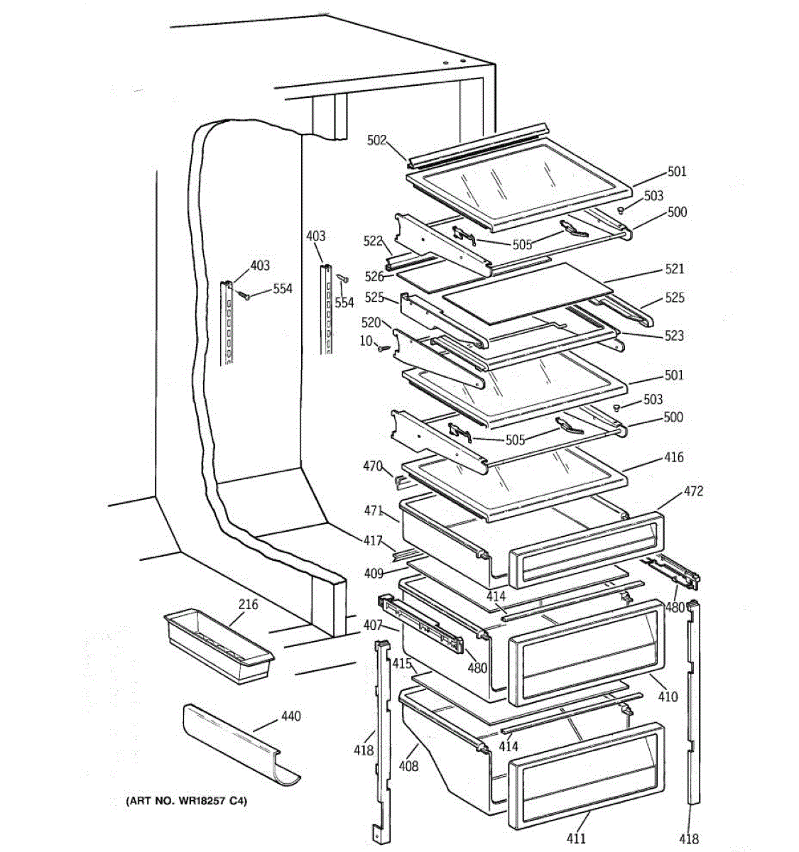 This shelf support secures a refrigerator shelf in place to keep food and containers stable. It restores proper shelf alignment and helps prevent sagging or falling items. What it does: