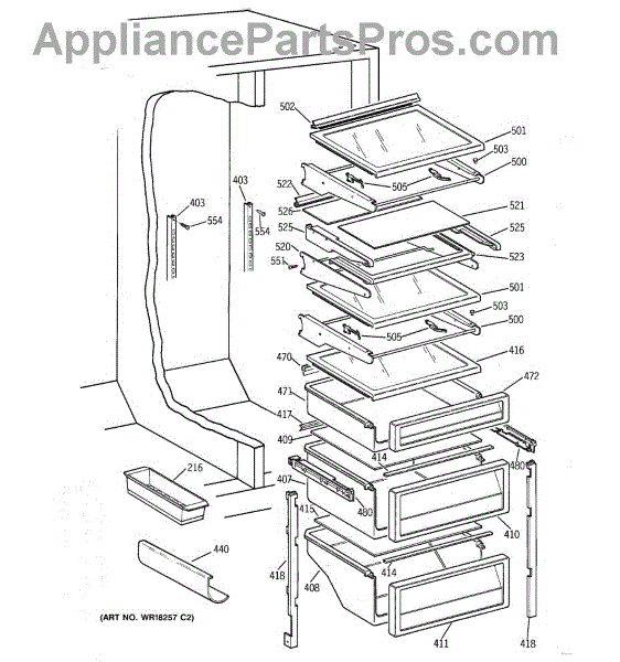 Replace your cracked or broken spillproof cantilever shelf. This refrigerator shelf installs inside the fresh food compartment to organize food items.