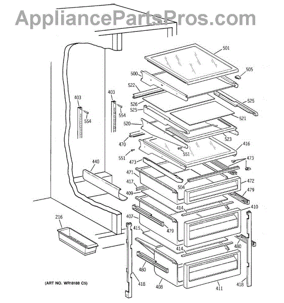 Slide bearing for refrigerator drawer rails. Enables smooth in-and-out drawer movement. Replace if cracked, worn, or causing drawers to stick or jam.