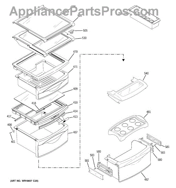 This pan frame assembly forms the shelf and support structure for the refrigerator's Custom Cool/deli drawer. Replacing a cracked or warped frame restores smooth drawer operation and a stable surface for items stored above.