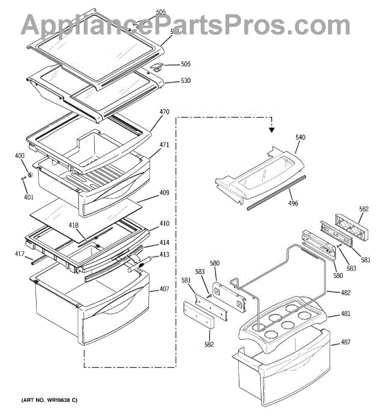 The Shelf Stop is an OEM replacement part for GE refrigerators. The shelf stop in your refrigerator is what locks the shelf into the refrigerator liner.The shelf stop features a small protruding nub that fits into pre-cut slots in shelf supports, preventing shelves from being inserted too far. Causes of a bad shelf stop can include wear over many years of shelf adjustment, or damage from impact with shelves. Symptoms of a bad shelf stop include: