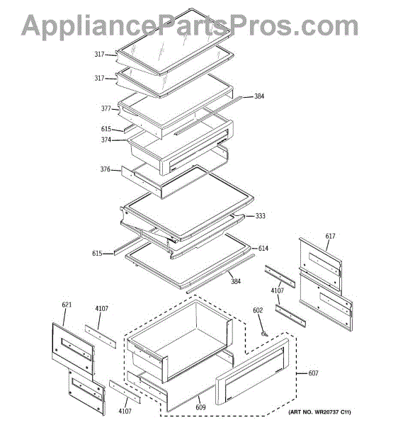 This snack pan shelf assembly replaces a damaged or missing snack pan to restore small-item storage and organization inside the refrigerator. It provides a dedicated shallow shelf for holding snack packs, yogurt, deli items and other small containers. What it does: