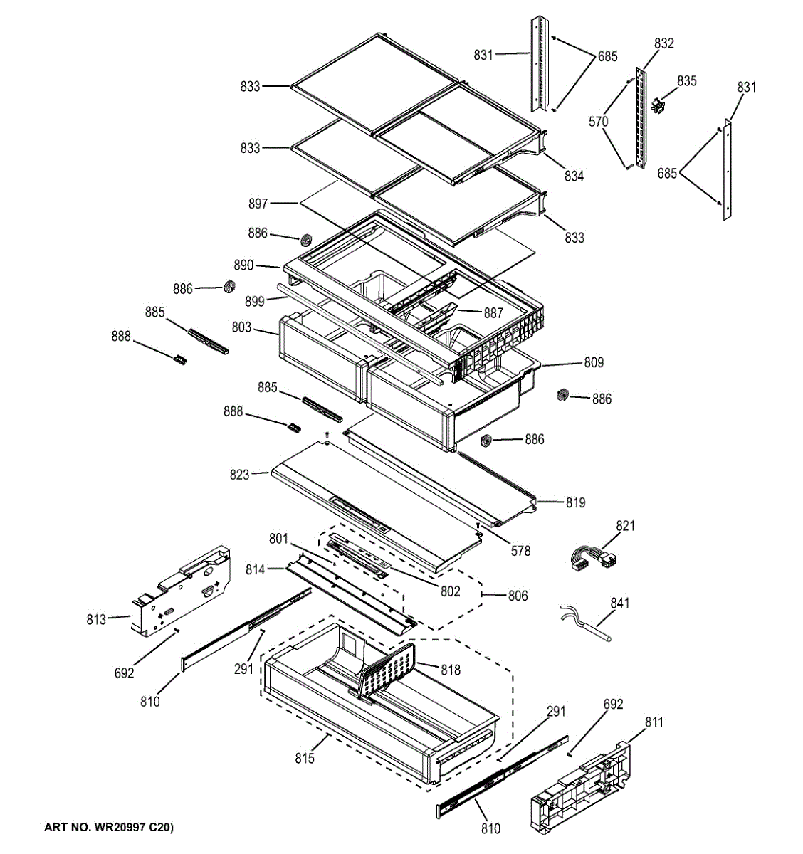 Parts for Ge CFE28TSHESS: Fresh Food Shelves Parts