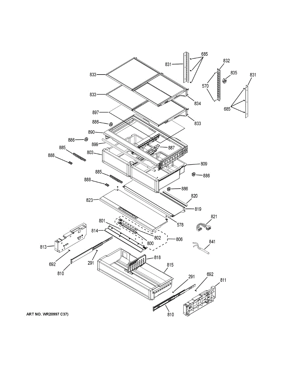 This center track guides and supports the fresh-food door drawer, helping the drawer slide smoothly and stay aligned for reliable access and seal. Replaces a worn or damaged center track to restore normal movement and alignment. What it does: