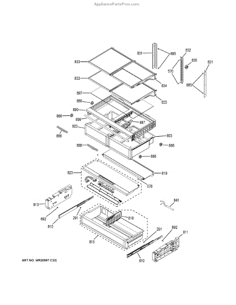 Crisper drawer frame assembly that seals humidified drawers in your refrigerator. Replace if gaps form or humidity control fails. Confirm fit with your model.