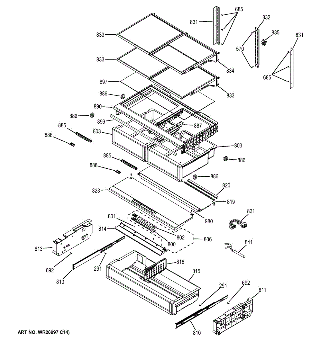 The ART FRAME VP ASM is an OEM replacement part for GE refrigerators. It provides an adjustable lid solution to seal the humidified drawers within the fresh food compartment.