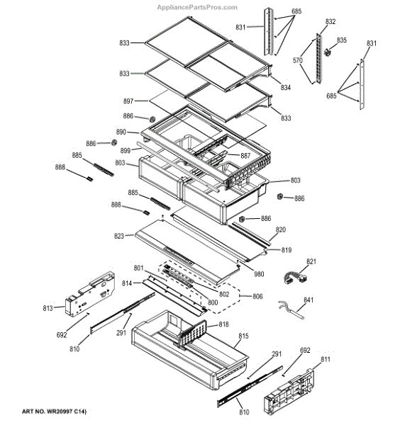 The ART FRAME VP ASM is an OEM replacement part for GE refrigerators. It provides an adjustable lid solution to seal the humidified drawers within the fresh food compartment.
