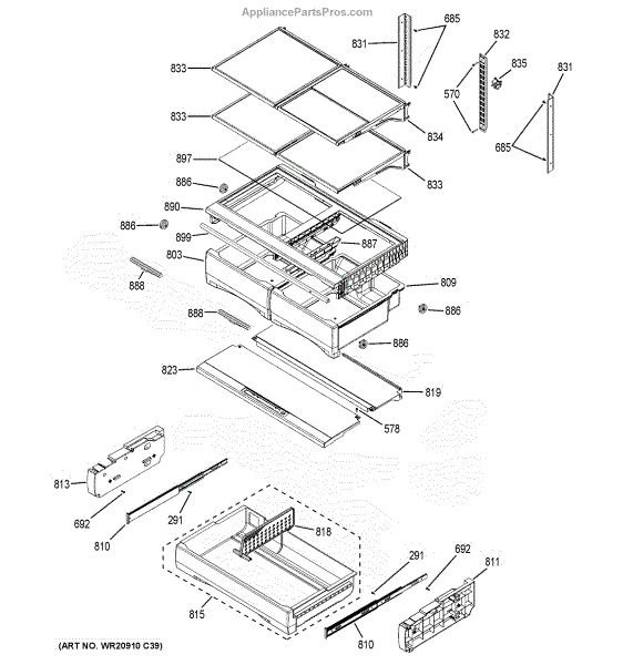 Parts for Ge DFE28JMKGES: Fresh Food Shelves Parts