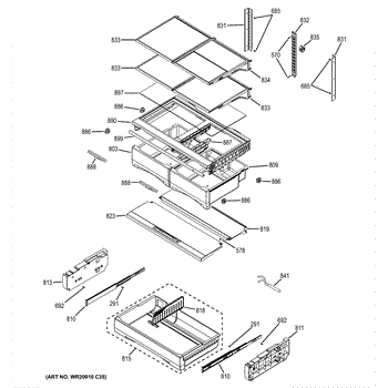 Parts for Ge DFE28JSHFSS: Fresh Food Shelves Parts