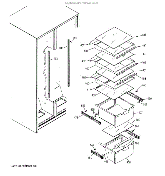 The Slide Assembly RH is an OEM replacement part for GE side-by-side refrigerators. As a replaceable sub-assembly, it restores smooth extension of plastic vegetable/multi-purpose slides on the right interior. The slide measures approximately 16 inches.