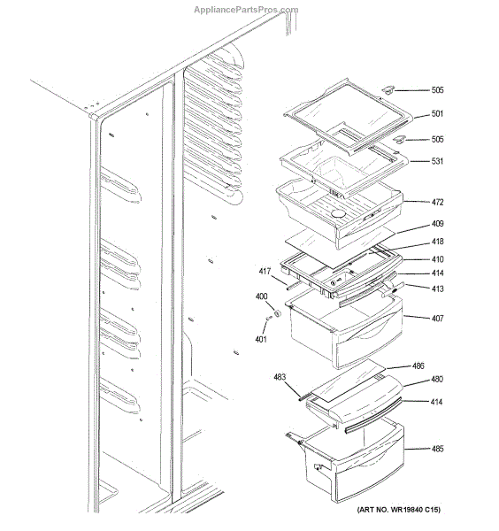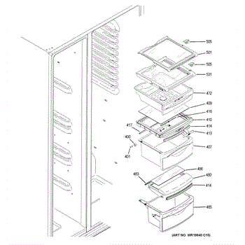 The Drawer Cover is an OEM replacement part for select GE refrigerator vegetable and deli drawers. It protects stored contents from dehydration, contaminants and prolonged illumination while keeping the drawers light-sealed. Proper drawer insulation optimizes food storage conditions. Causes of a bad drawer cover can include cracks and breaks from repeated drawer opening/closing stresses over time. Exposure to produce acids and moisture accelerates degradation of plastic sealing surfaces. Symptoms include: