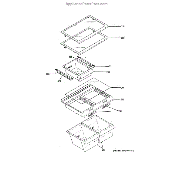 Parts for Ge GTE18GSHMRSS: Fresh Food Shelves Parts