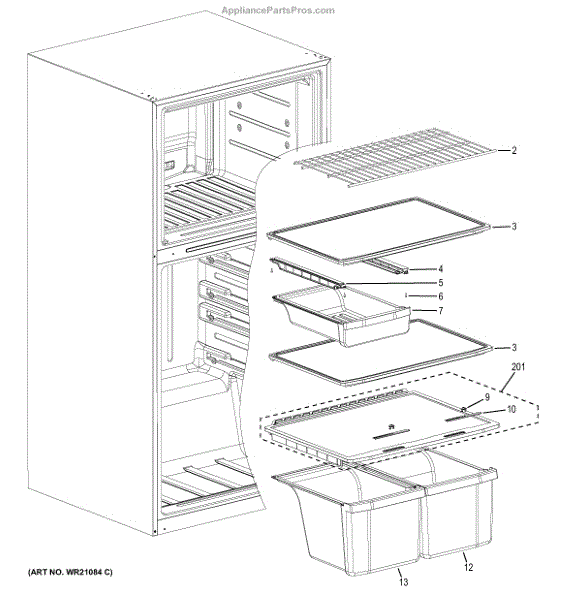 Parts for Ge GTE21GTHBCC: Fresh Food Shelves Parts