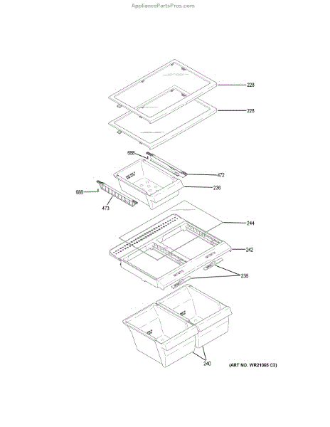 Parts for Ge GTS16GTHLRBB: Fresh Food Shelves Parts