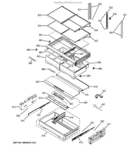 Replace your cracked or broken refrigerator tuckaway shelf assembly. This retractable shelf installs in the fresh food compartment for flexible storage.
