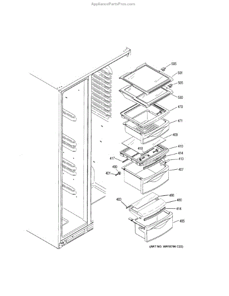 Replace a cracked or broken tuckaway shelf assembly in your side-by-side refrigerator. Restores the fold-away shelf mechanism for flexible storage.