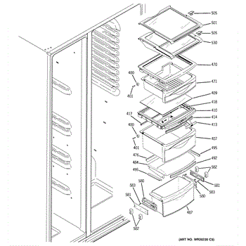 Covers the evaporator area and collects defrost water in your side-by-side refrigerator. Replace if cracked, broken, or missing to prevent leaks.