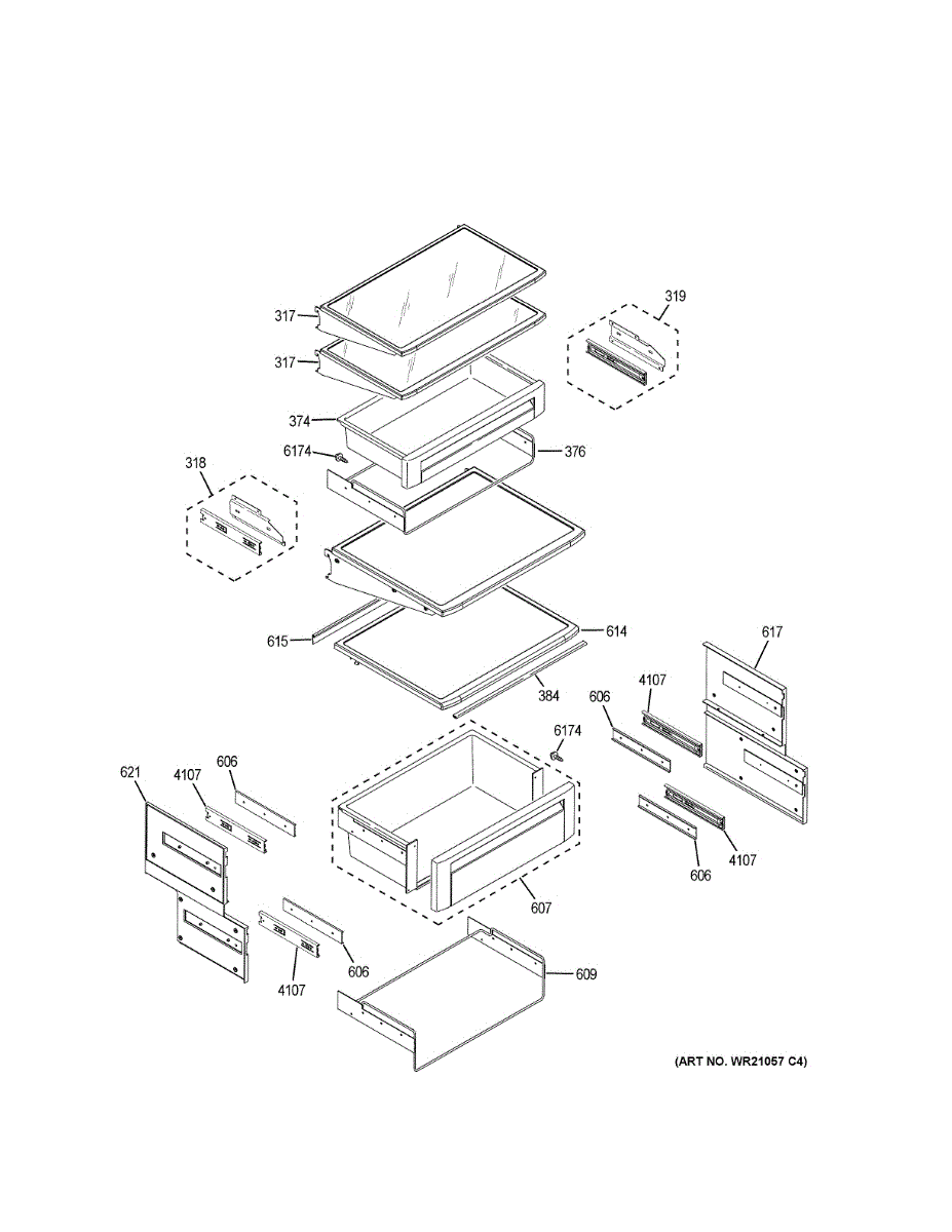 Replacement snack pan assembly for refrigerators. Installs in the fresh food compartment to organize snacks and small items. Replace if cracked or broken.
