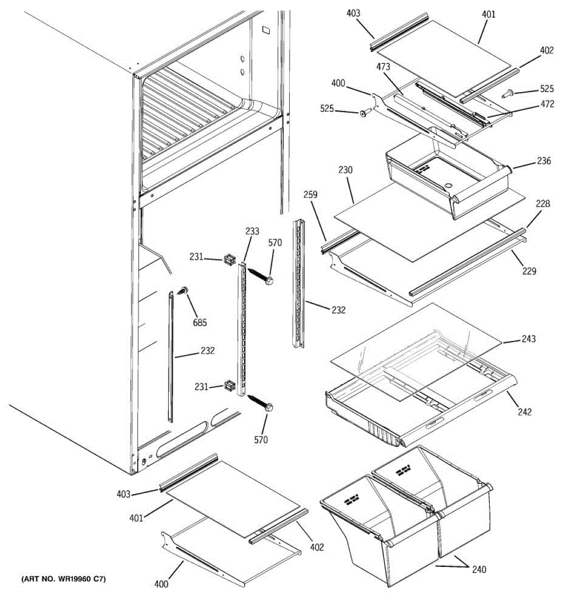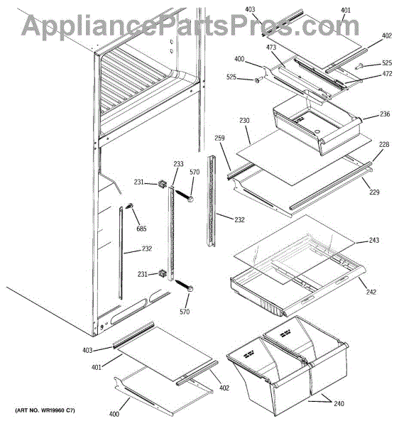 This left side snack pan slide is a genuine General Electric part, sold individually. This left side snack pan slide can be used as a replacement part for a refrigerator. This is the part on which the crisper drawer rests, and it facilitates the sliding in and out of the crisper drawer. The left side snack pan slide is made out of durable white plastic.The left side snack pan slide might have to be replaced at some point within the lifespan of a refrigerator if it is damaged to the point that it can no longer serve its function. This damage could take the form of cracks, punctures, or erosion to the plastic material as a result of general wear and tear or from a collision with a hard object that warps the component beyond functionality. If either of these things occur, the component should be removed and replaced with this genuine OEM replacement part.This is an OEM part sourced directly from the manufacturer. It is sold individually. This left side snack pan slide is compatible with the following appliance brands: General Electric and Kenmore.